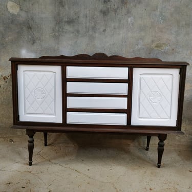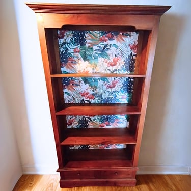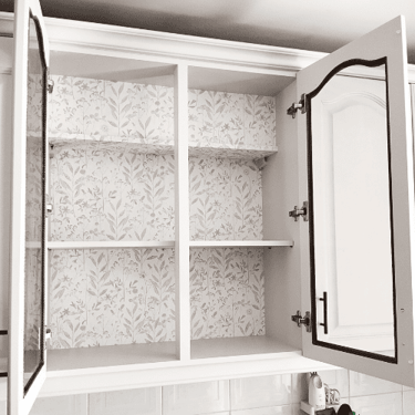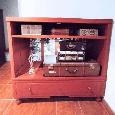 Desmontagem, lixagem, pintura, montagem, troca dos puxadores e aplicação de papel de parede no interior do móvel vitrine.