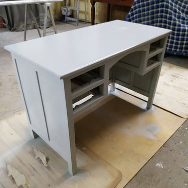 Lixagem, pintura e aplicação de novo tampo de madeira.