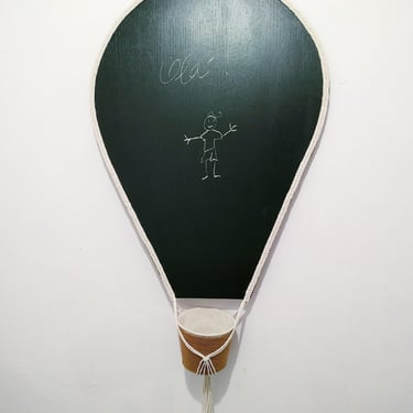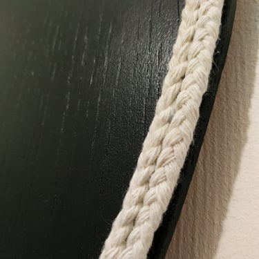 Criação de quadro de madeira pintado com tinta de ardósia preto, com aplicação de elementos artesanais feitos em macramé.
