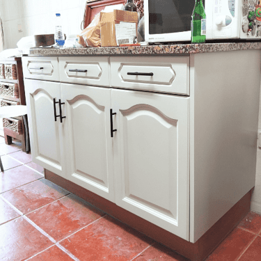 Renovação simples através de lixagem, pequenos arranjos, pintura das portas e frentes de gaveta e novos puxadores (em falta na fotografia).