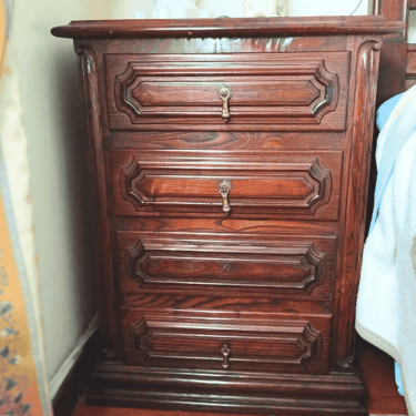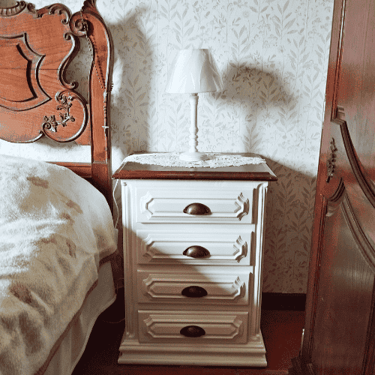 Aplicação de papel de parede, lixagem e pintura da mobília, troca de puxadores e de luminárias.